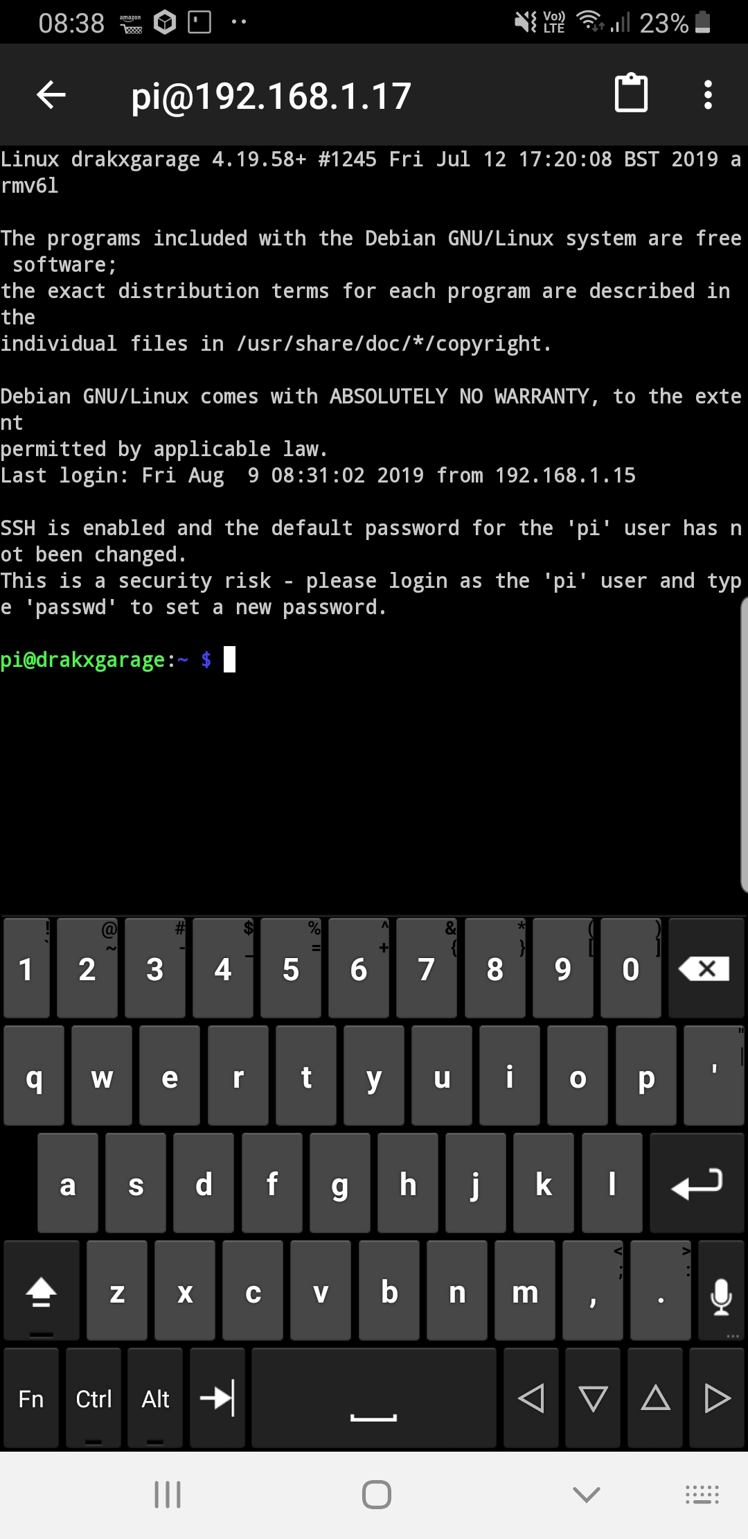 however weirdly i was also messing around with termux on the phone and decided for no reason at all to ping the address lo and behold we have life! and i can ssh in, update etc